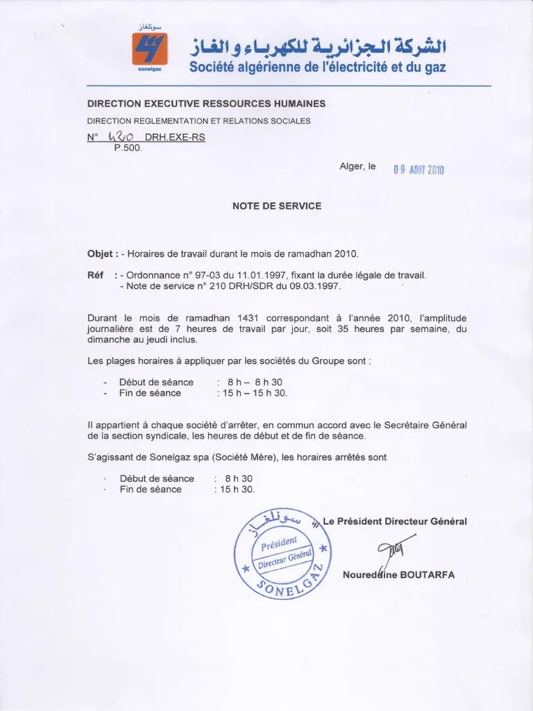 Note de service horaire de travail. Check spelling or type a new query. We did not find results for: Maybe you would like to learn more about one of these?